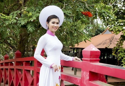 Miss khả ái Nguyên Ngọc đón xuân mới với áo dài của NTK Nguyễn Tuấn