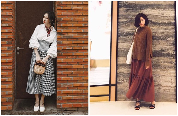 Xuống phố cuối tuần với chân váy dài thướt tha