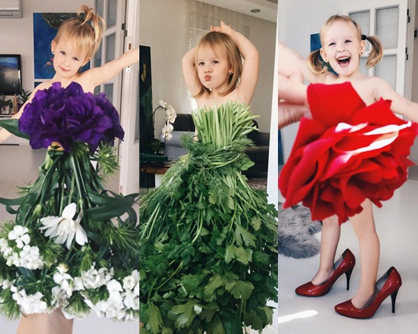 Cô bé 3 tuổi trở thành ngôi sao mạng nhờ mẹ kết váy áo từ rau, quả